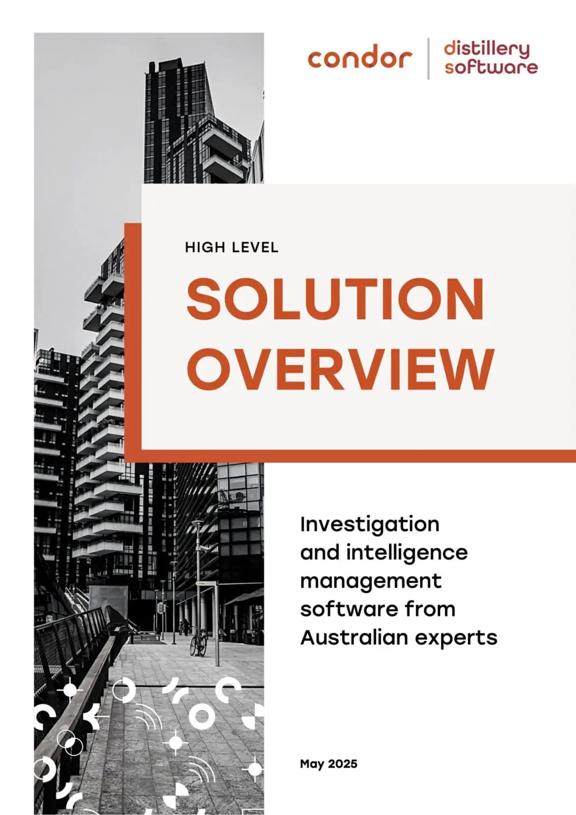 Condor is Distillery Software’s next generation software product for delivering intelligence and investigative case management solutions to the broader law enforcement and regulatory domains. It has been purpose built with base capabilities out-of-the-box to support the requirements of the sector.